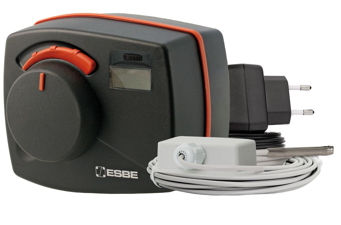 Ulkolämpötilaohjattu lämmönsäädin, jossa on sisäänrakennettu säätömoottori 230 V.